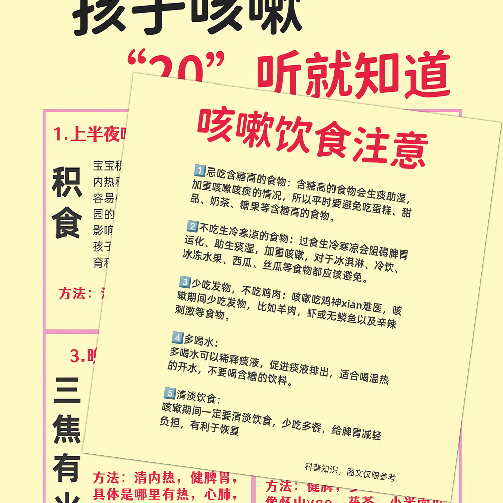 听孩子咳嗽身体发出预警信号中医儿童脾胃化痰食疗知识科普贴画