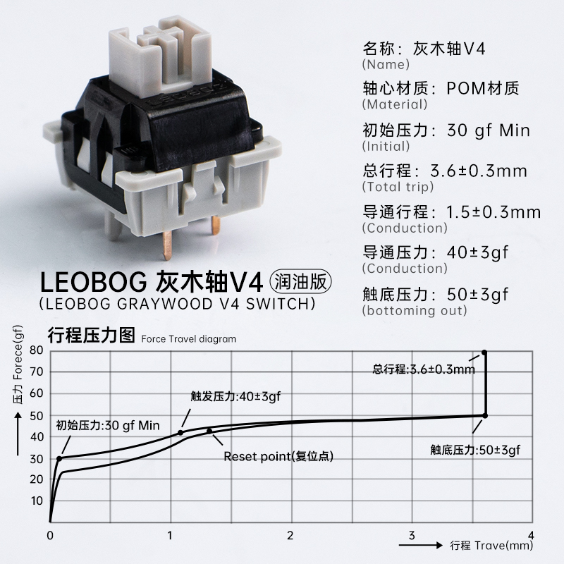 LEOBOG灰木轴V4热插拔线性轴5脚厂润HIFI麻将音全POM机械键盘轴体