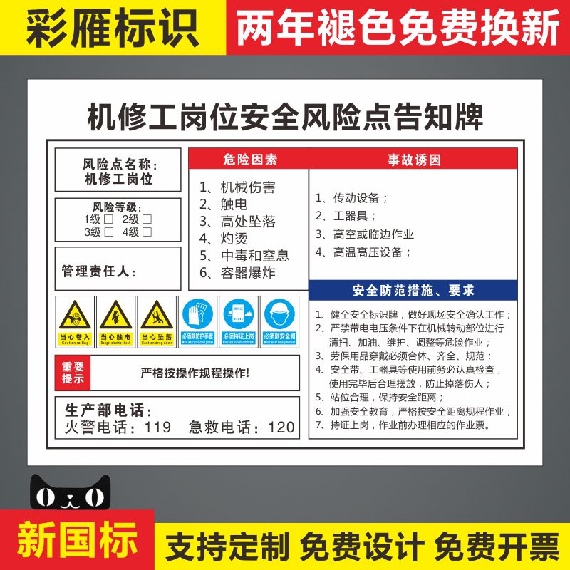 机修工岗位安全风险点告知牌有限受限空间工厂生产设备状态职业危