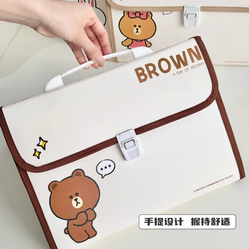 文谷12入大容量试卷夹手提风琴包 布朗熊系列多层插页袋 学生考试试卷分类整理收纳神器