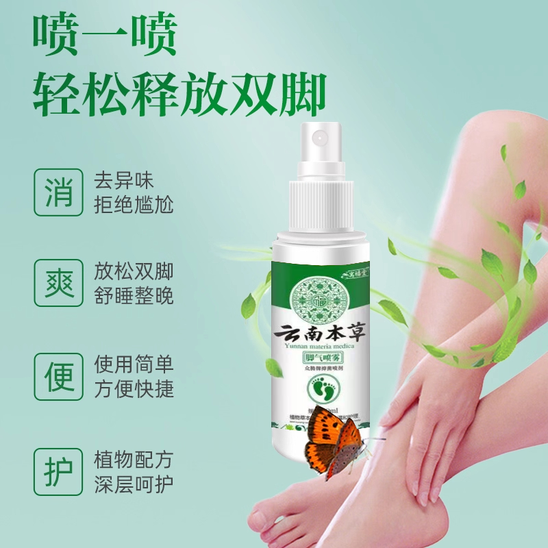 云南本草腳气喷雾止痒脱皮杀菌烂脚丫真菌感染水泡脚臭汗专用喷剂