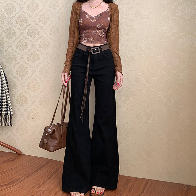 李李服饰黑色高级不贴腿微喇牛仔裤女2025早秋高腰弹力显瘦拖地裤