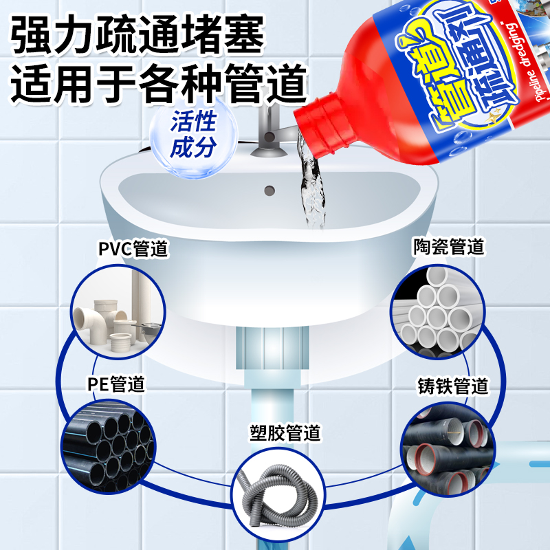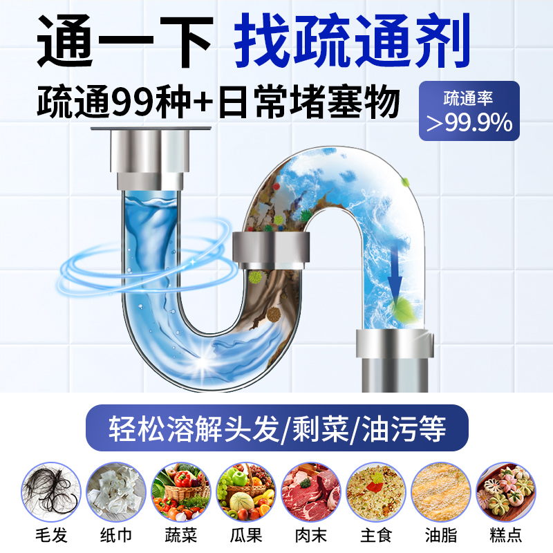 管道疏通剂强力溶解下水道厨房油污马桶厕所堵塞专用除臭神器地漏