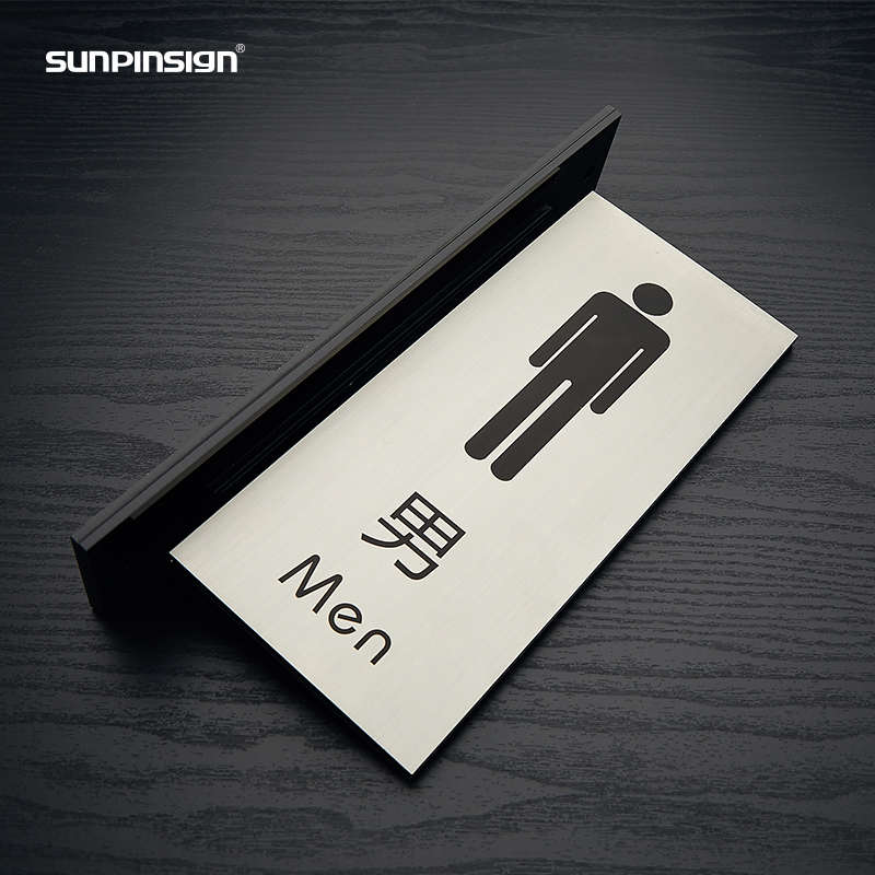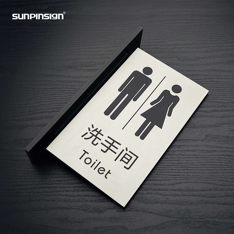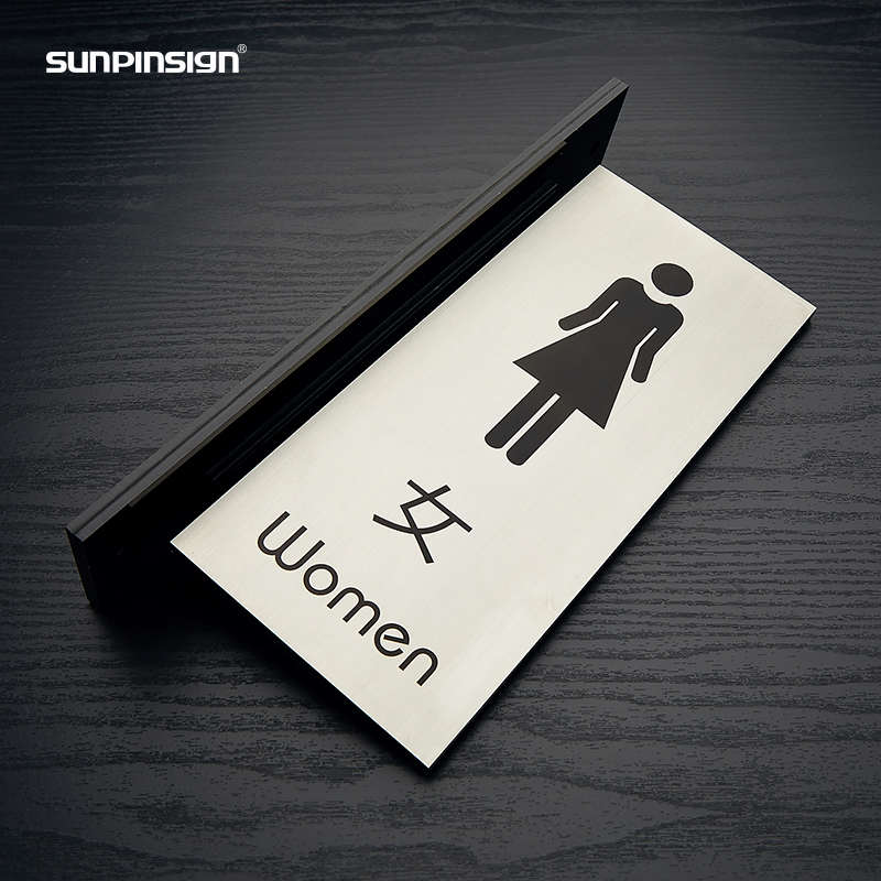 男女洗手间双面侧装竖式科室牌卫生间不锈钢标识学校企业牌定制