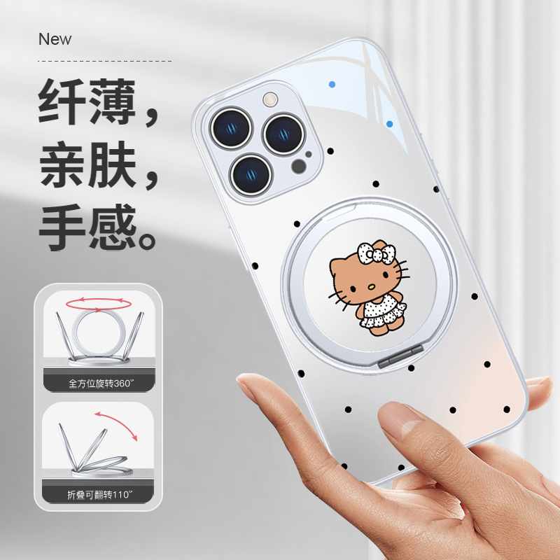 hellokitty猫适用于苹果16磁吸手机壳iphone15promax玻璃14plus波点凯蒂猫13带支架12指环11少女心全包保护套