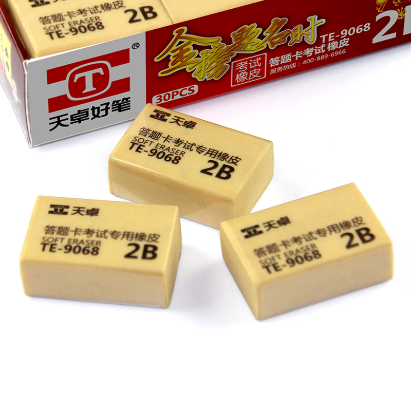 天卓文具答题卡考试专用橡皮2B 学生涂卡笔搭配橡皮擦 柔软无屑擦除干净 长方形学习用品30块一盒米黄色易擦