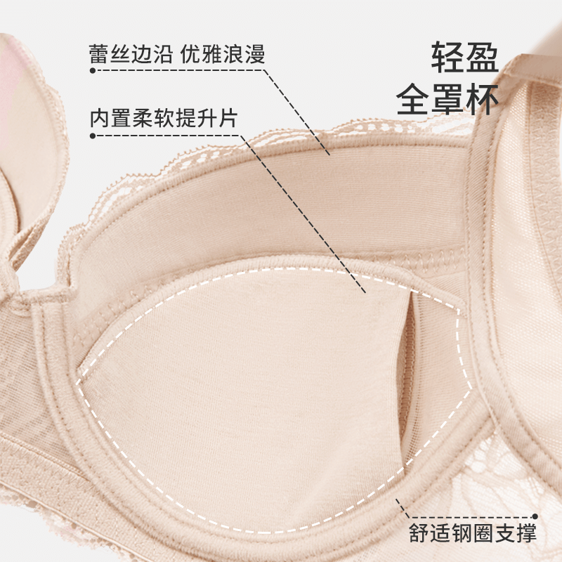 Triumph/黛安芬简约蘩叶大胸性感文胸调整收副乳薄款文胸E003222