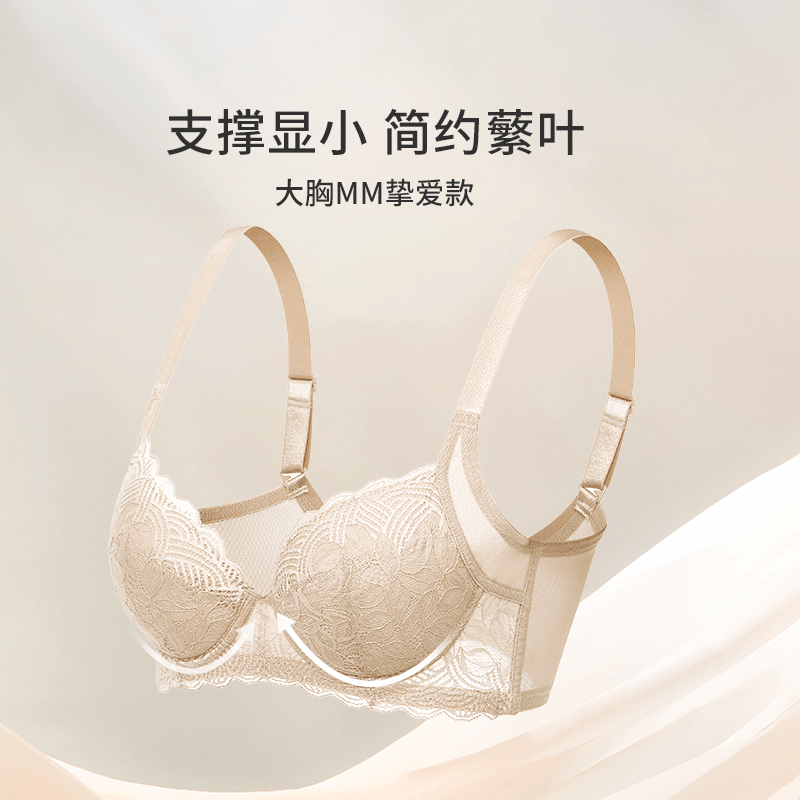 润微提拉女王内衣女夏薄款大胸显小无痕大码调整防下垂粉底液文胸