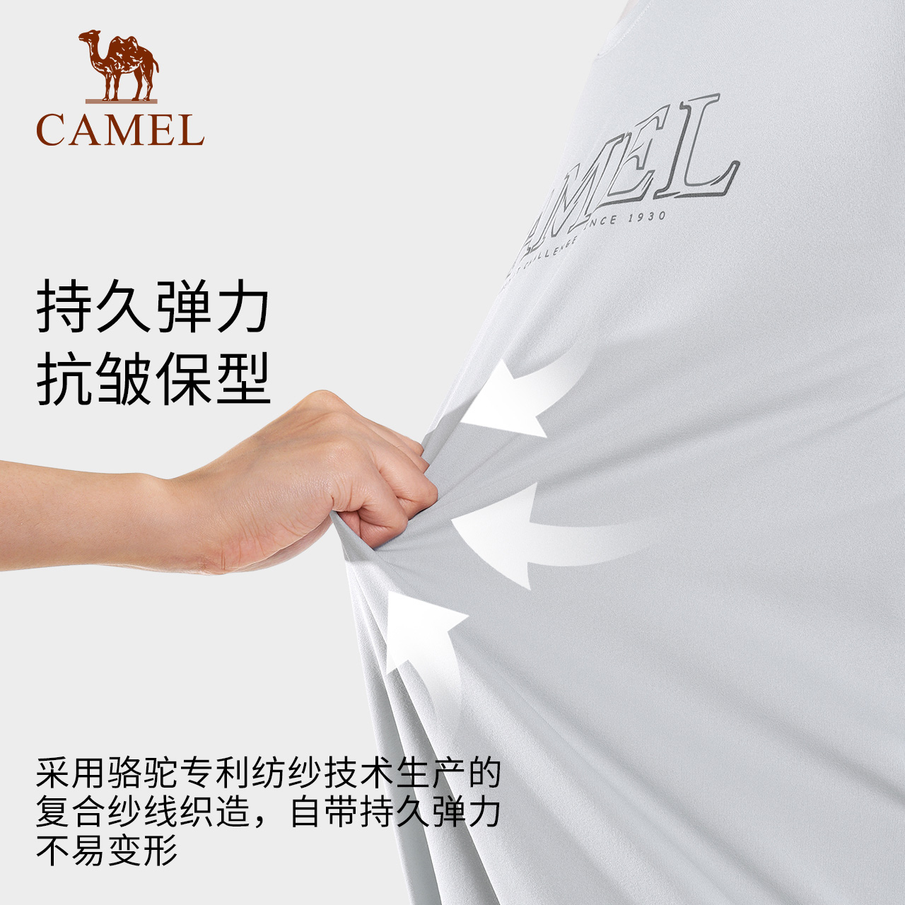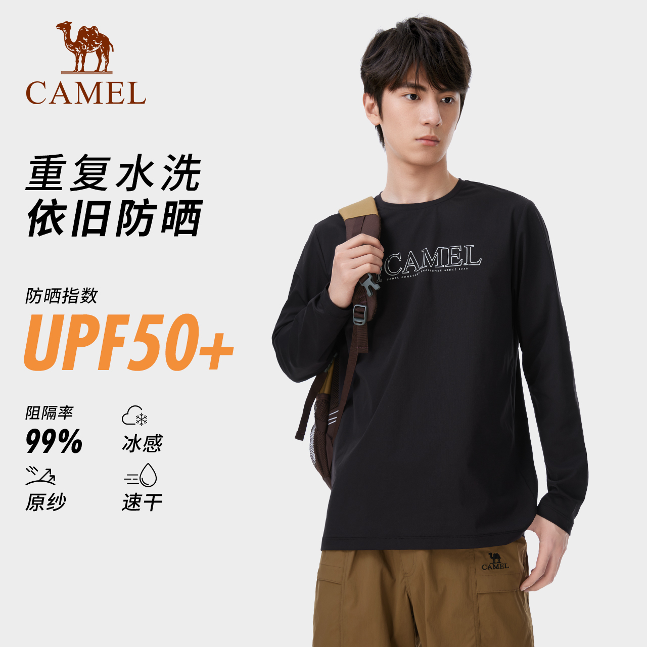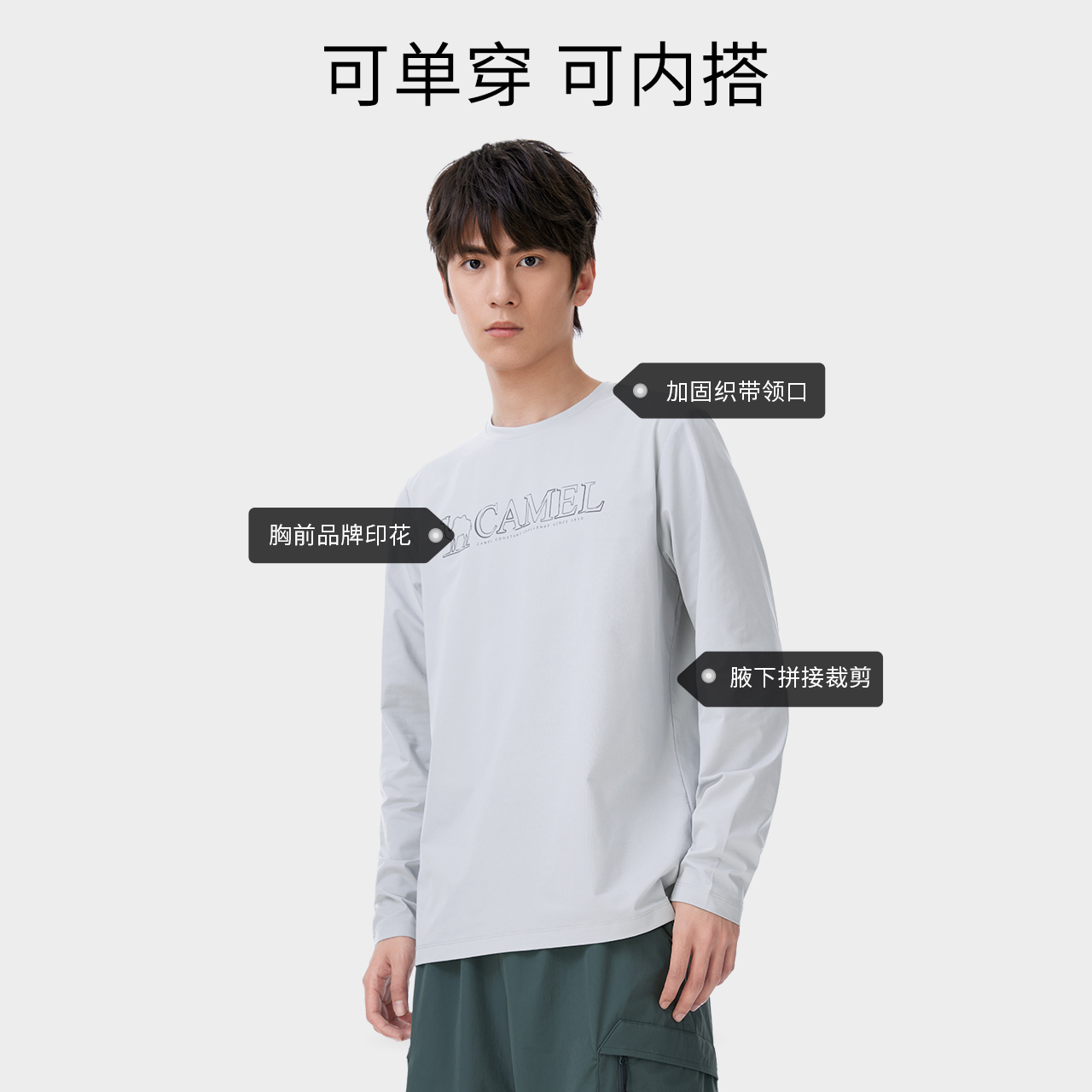 骆驼男装速干长袖圆领卫衣男运动春防紫外线弹力修身内搭打底T恤