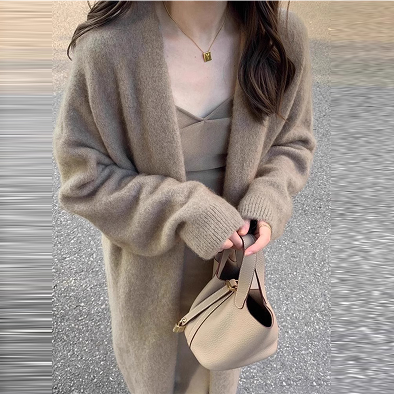 中长款过膝毛衣外套女秋冬季温柔慵懒风加厚羊毛灰色针织开衫大衣
