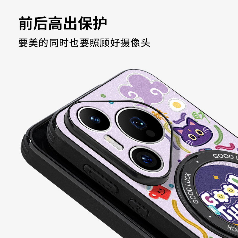 彩色涂鸦猫猫华为pura70手机壳新pura80Pro镜头全包磁吸P70薄旋转防摔pura70Pro+素皮潮牌高级适用支点壳Ho3