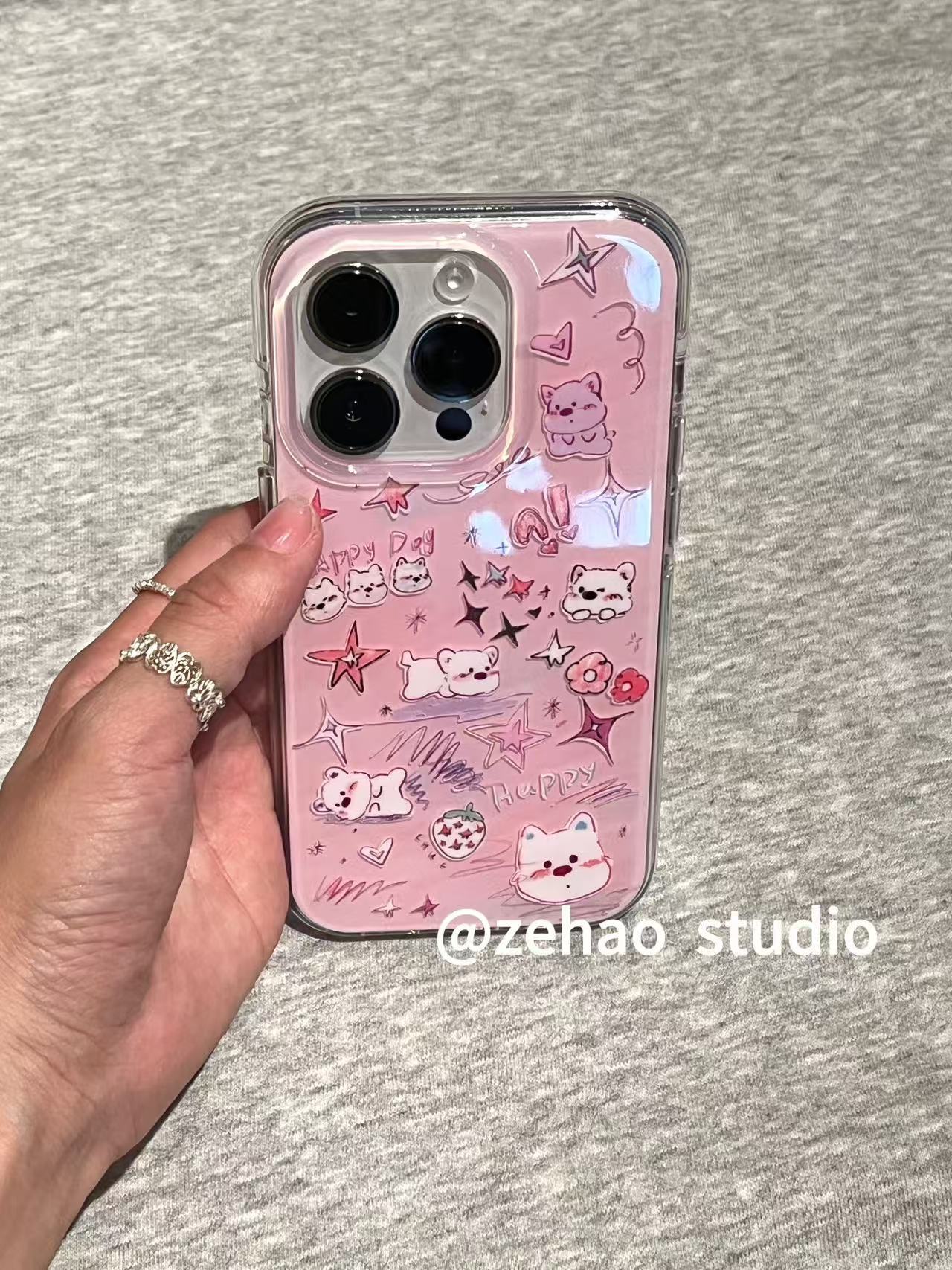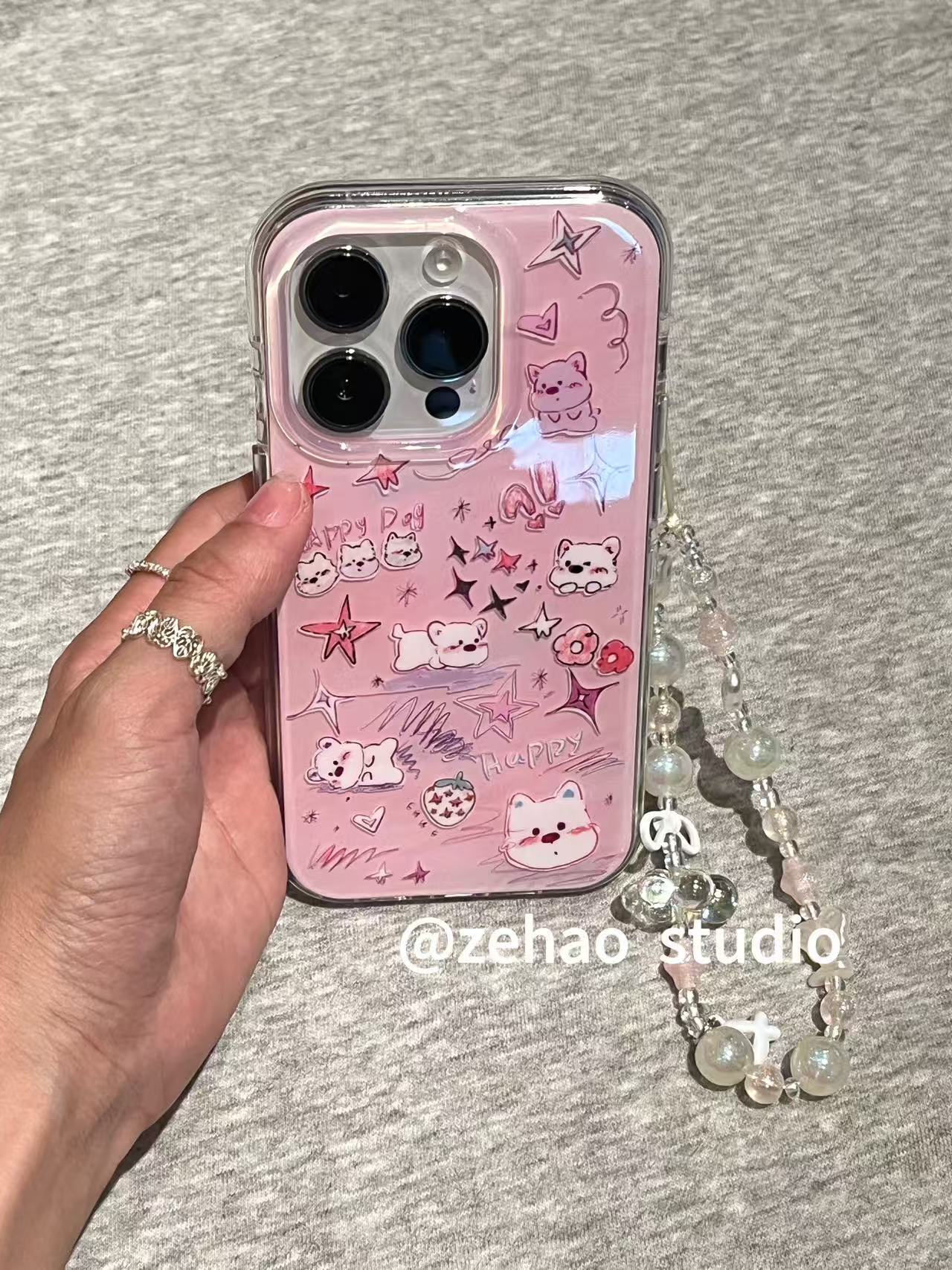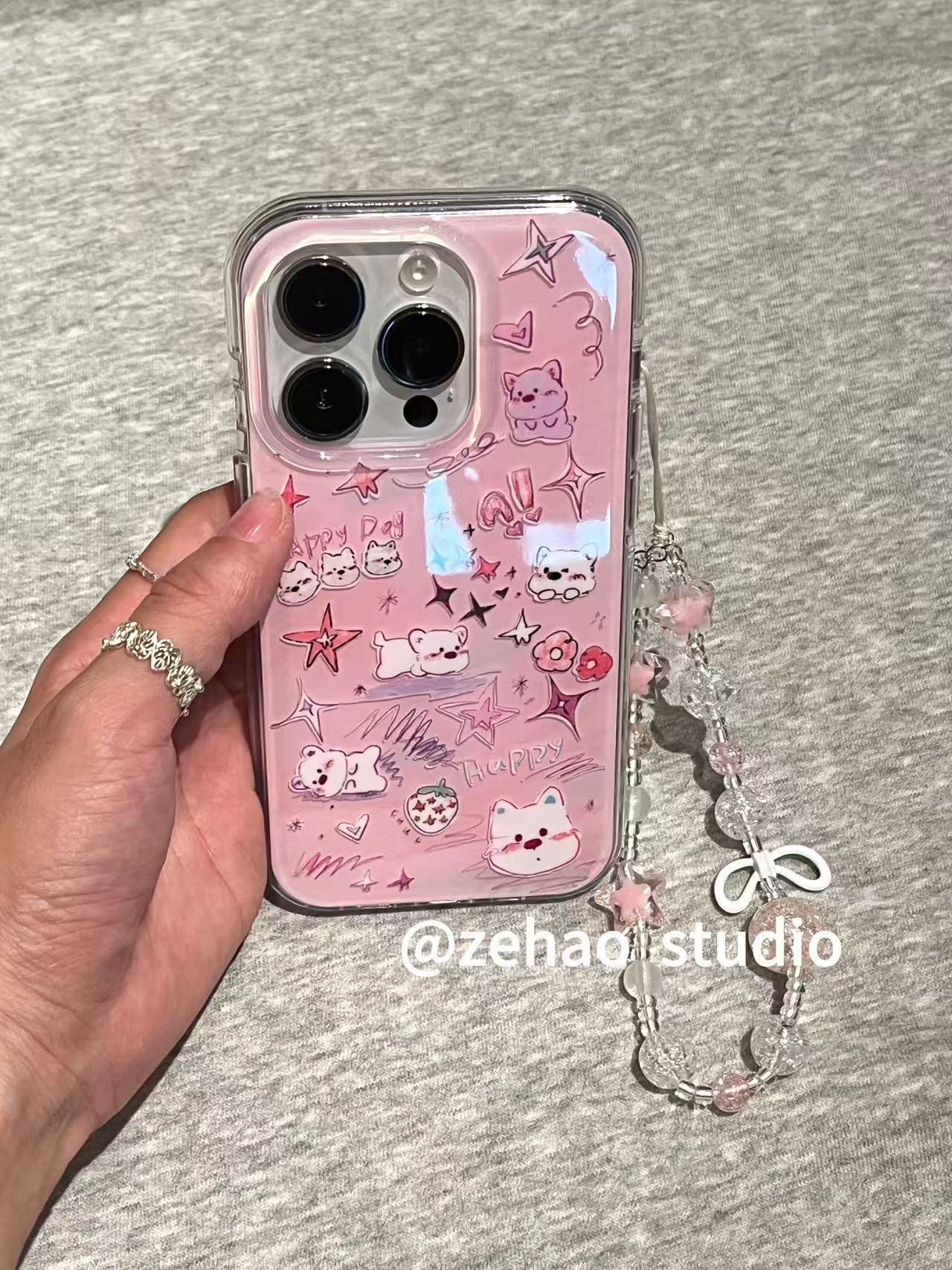粉紫可爱涂鸦小狗适用于苹果17promax手机壳iphone16pro保护套15 · 粉紫可爱涂鸦小狗(单壳) iphone16pro