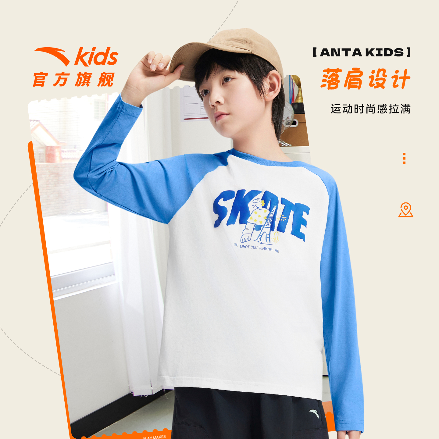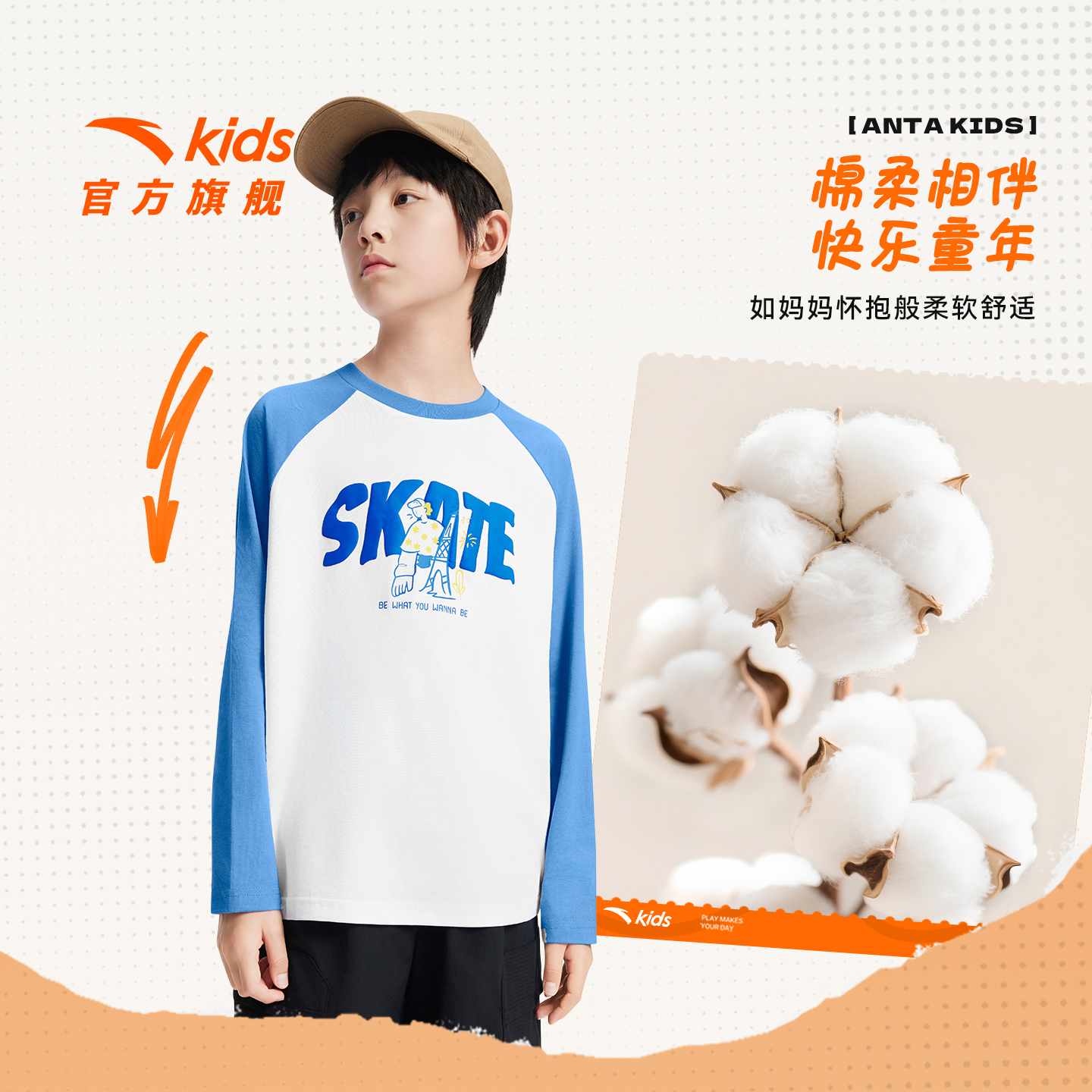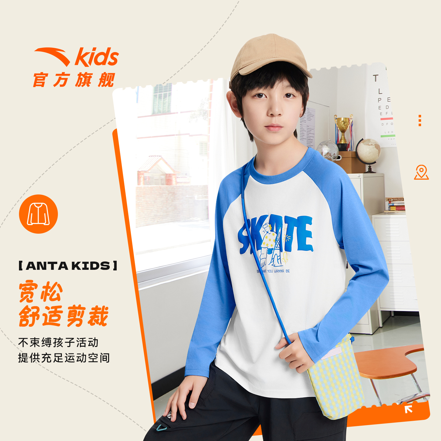 安踏儿童长袖T恤少年顽家2025秋季新款棉感舒适男童运动上衣童装