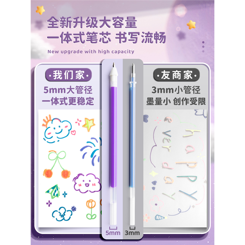 三年二班×魔卡3D立体果冻笔轮廓笔果汁笔多色手帐笔日系笔绘画笔涂鸦学生中性笔可爱创意少女心diy荧光笔