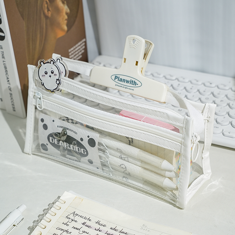 双层透明笔袋考试专用大容量文具袋简约日系2025新款流行多层铅笔袋高颜值女孩男生初中高中生小学生铅笔盒