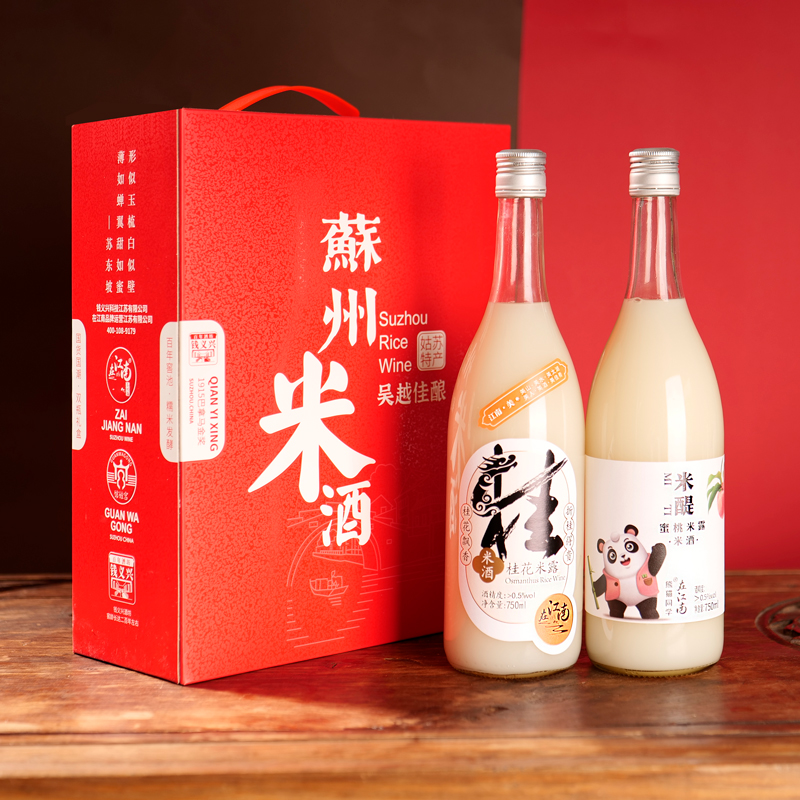 在原味苏州米酒礼盒江南桂花荔枝糯米甜酒中秋礼双瓶套装