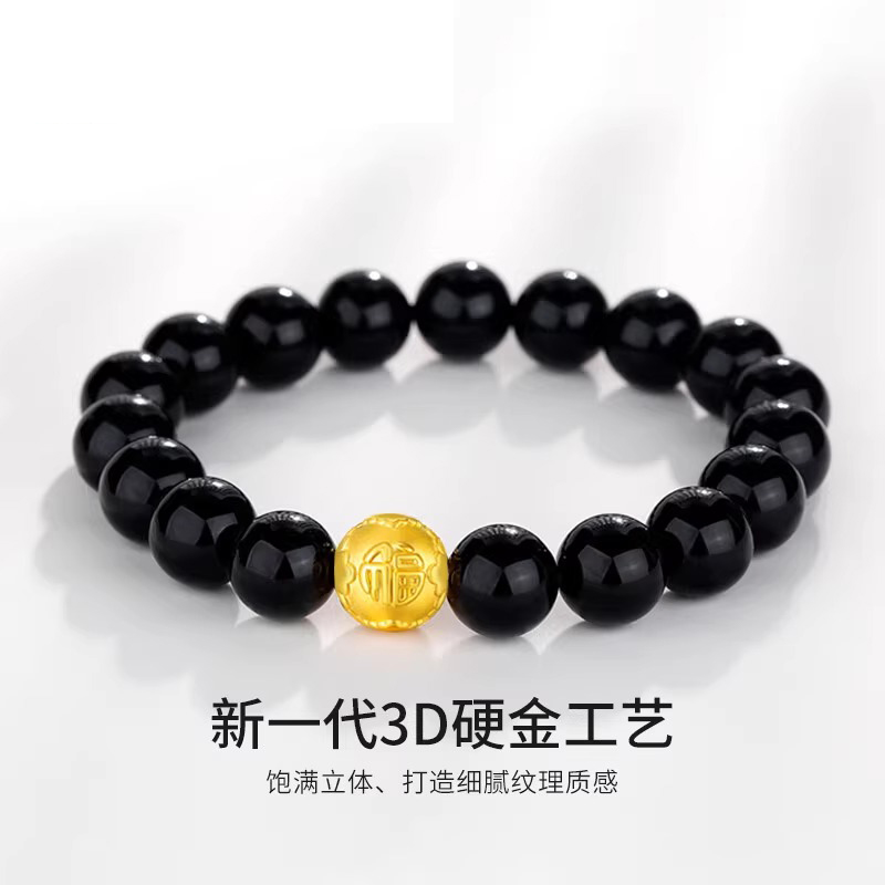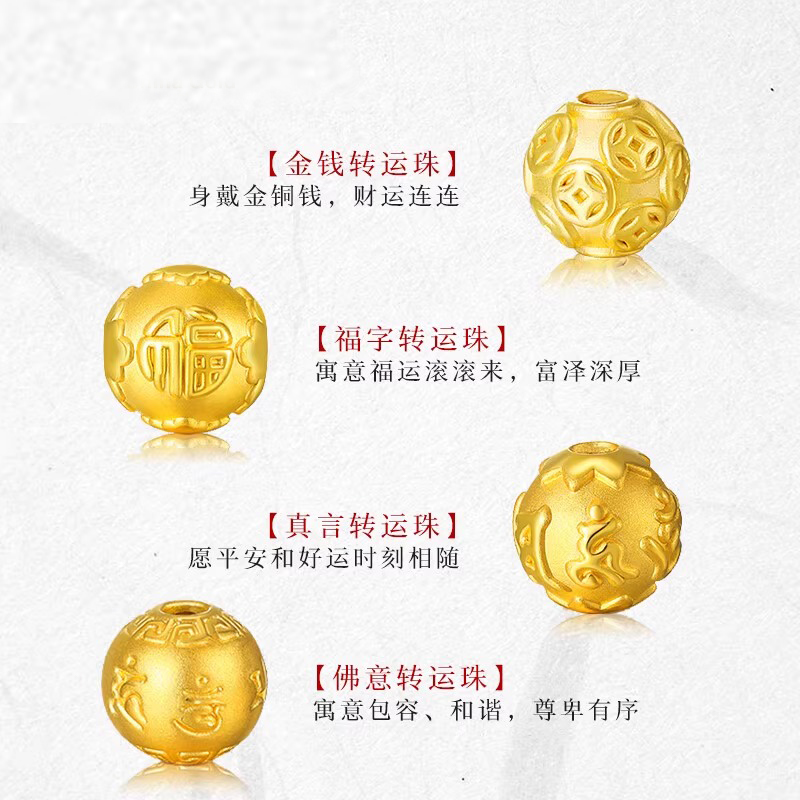 沙金祥云珠六字真言钱币黄金色转运珠隔珠手链路路通男女饰品金珠