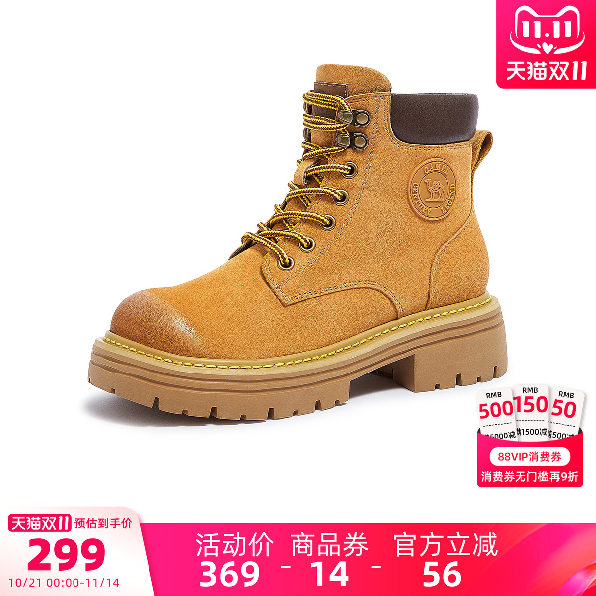 骆驼女鞋2025秋季新款马丁靴女厚底工装靴子户外耐磨踢不烂大黄靴