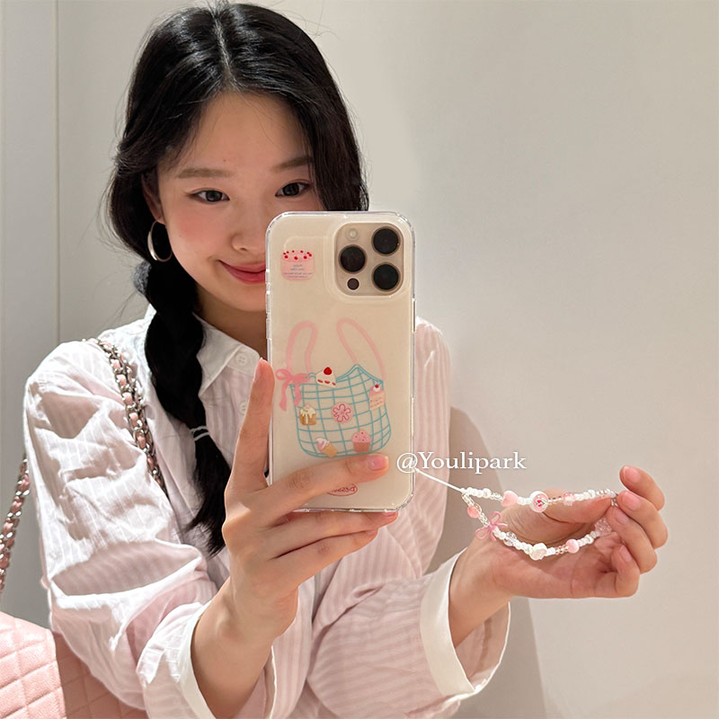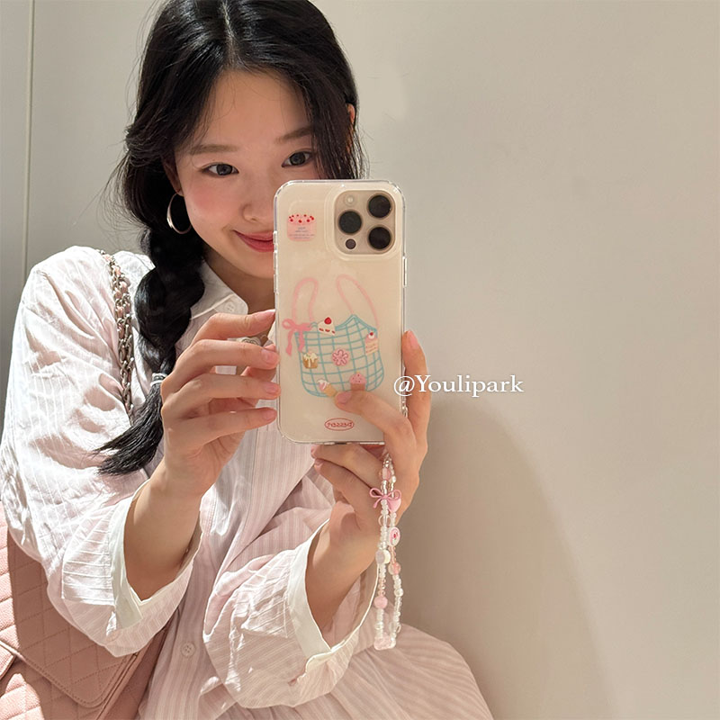 由里公园ins少女心购物袋甜甜圈蛋糕甜品16适用17pro苹果17ProMax手机壳iPhone17全包15挂链14Promax保护套韩