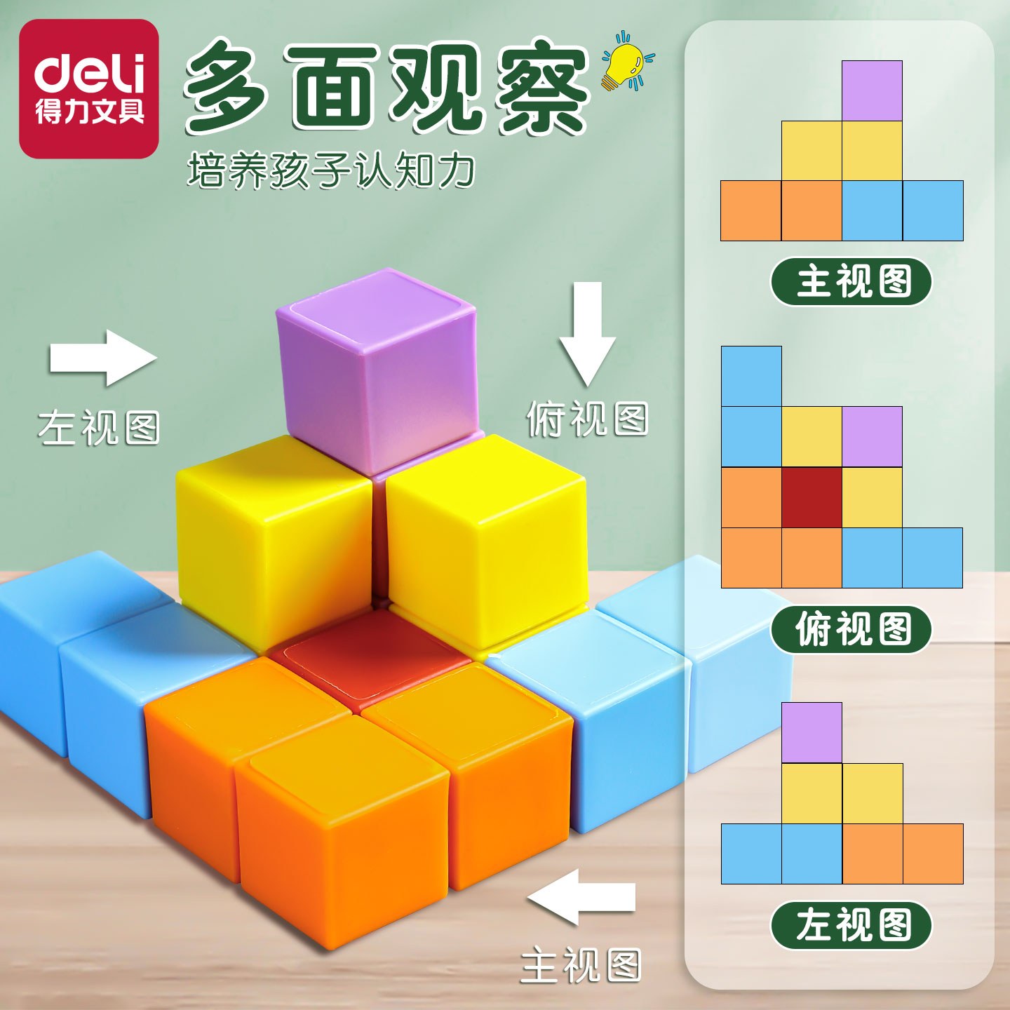 得力正方体教具立体图形几何体模型小学一到六年级数学学习2cm小方块儿童方位观察积木创意拼搭立方体学具