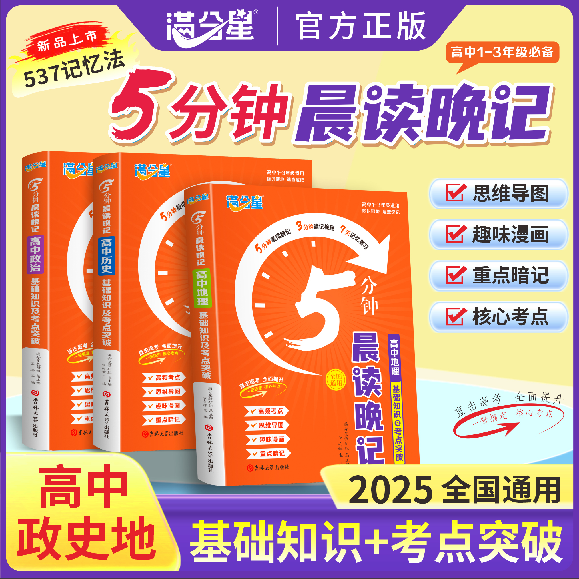 2025新版丨满分星5分钟晨读晚记高中基础知识公式定律及考点突破 全国通用 思维导图 高中语数英政史地物化生