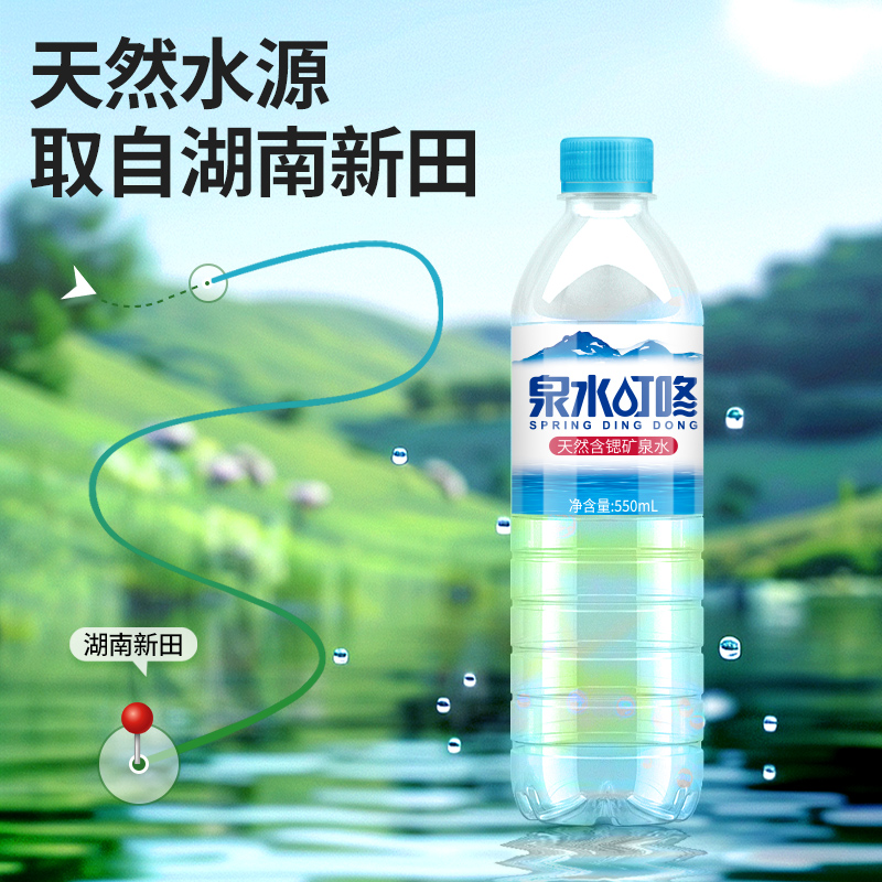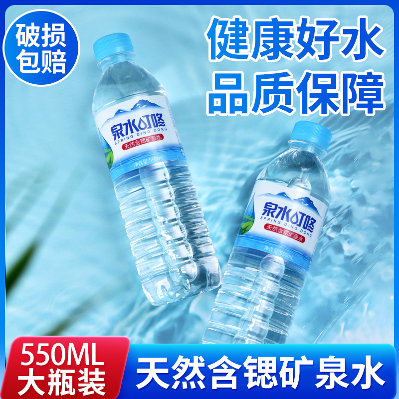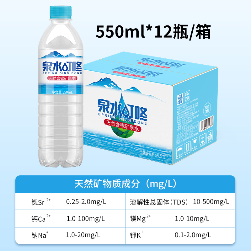 泉水叮咚天然含锶矿泉水550ml*12瓶一整箱办公会议家庭日常饮用