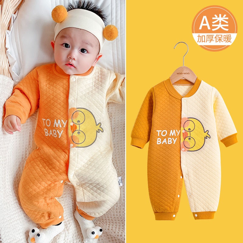 婧麒新生儿婴儿衣服秋冬夹棉满月纯棉初生宝宝秋装连体衣a类爬服