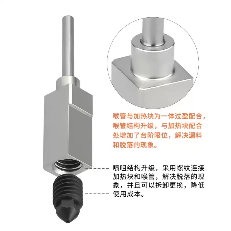 升级拓竹X1P1P竹子热端喷头组件黄铜CHT克隆三孔大流量硬化钢喷嘴