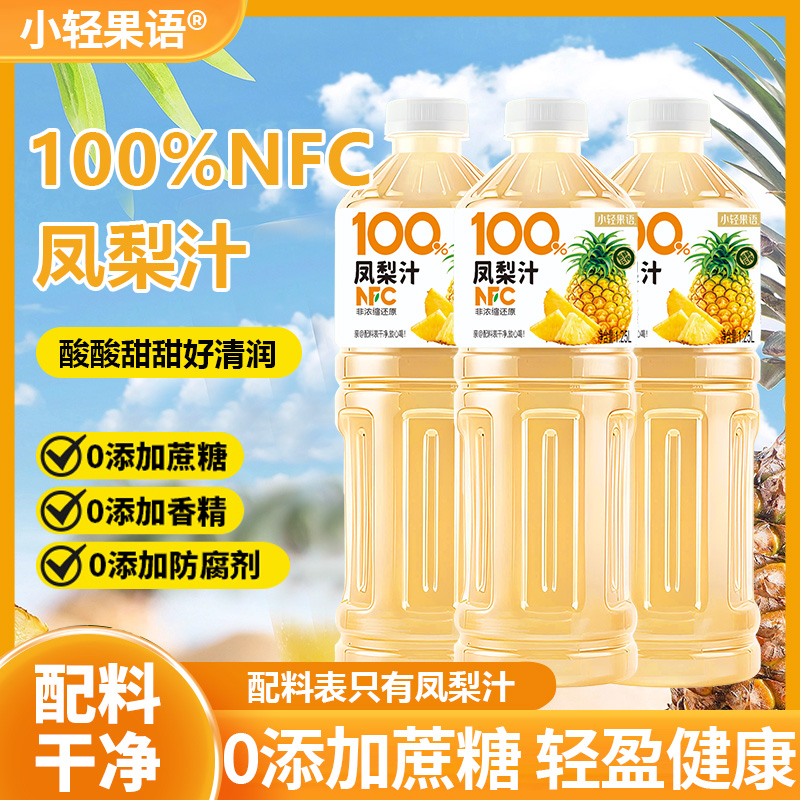 【四种口味】100%NFC凤梨汁1.25L大瓶针叶樱桃汁青提汁柚子汁整箱