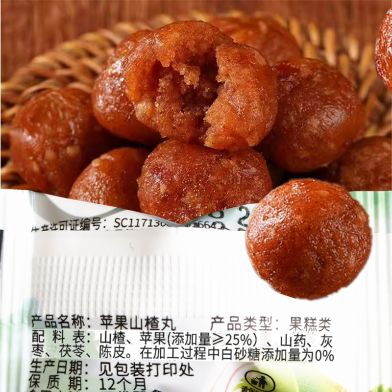 无添加蔗糖苹果山楂丸六物山楂球偏酸消开儿童宝宝糖尿人胃零食