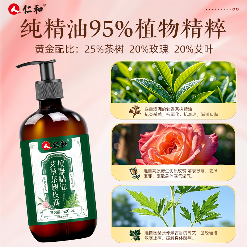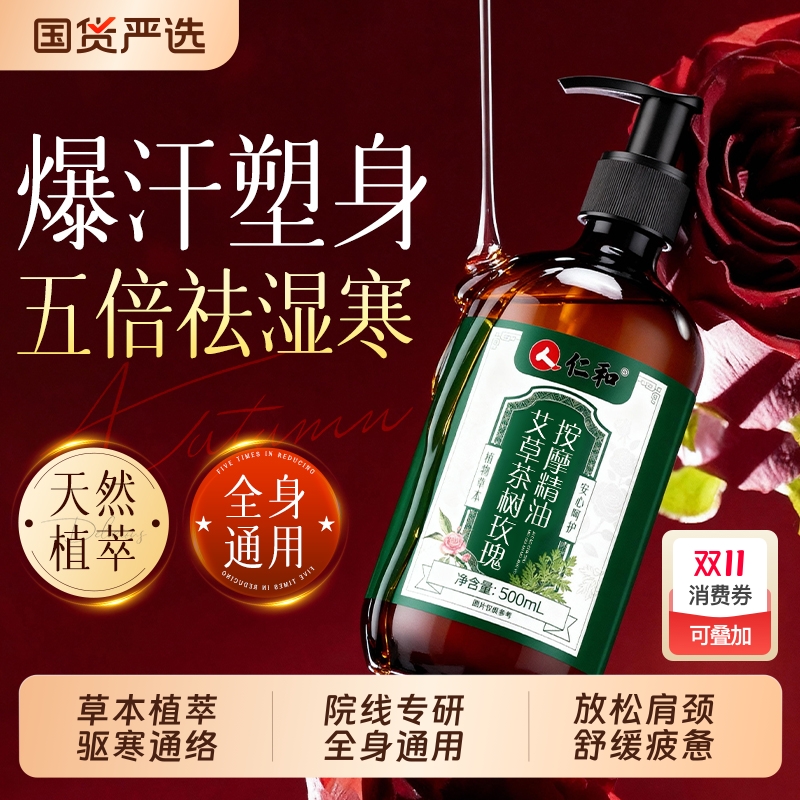 仁和艾草玫瑰按摩精油全身通经络刮痧推拿开背免洗排祛去湿气毒