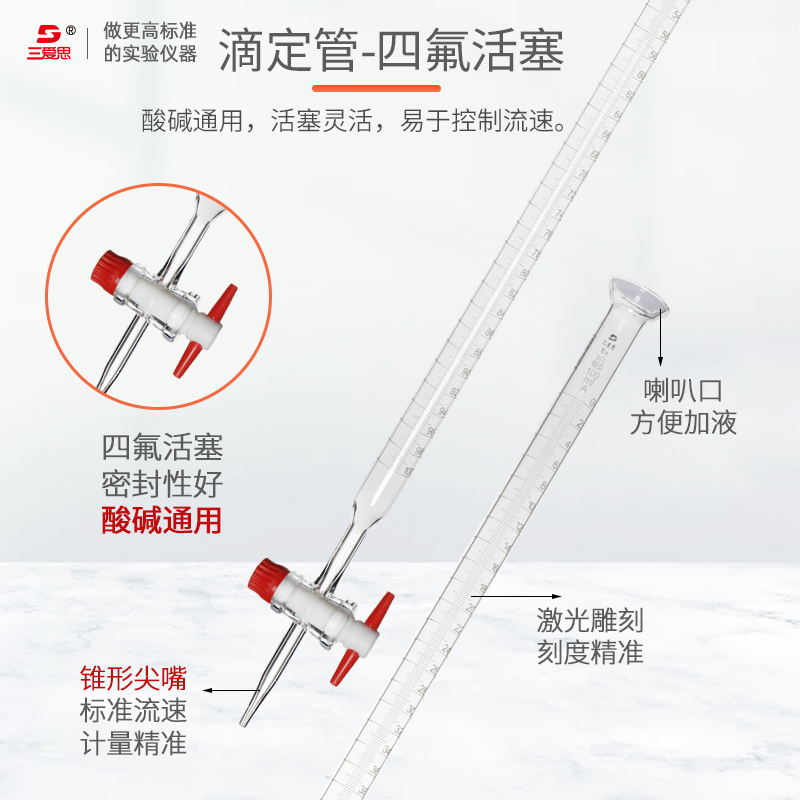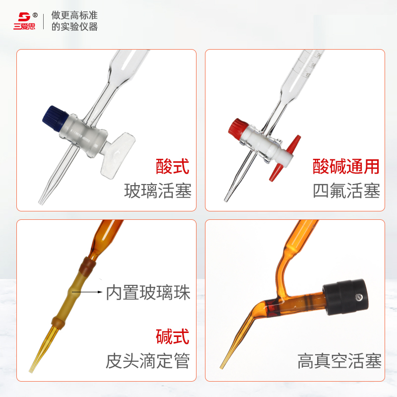 三爱思光刻滴定管10 25 50 100MLA级过检白色棕色碱酸式玻璃活塞