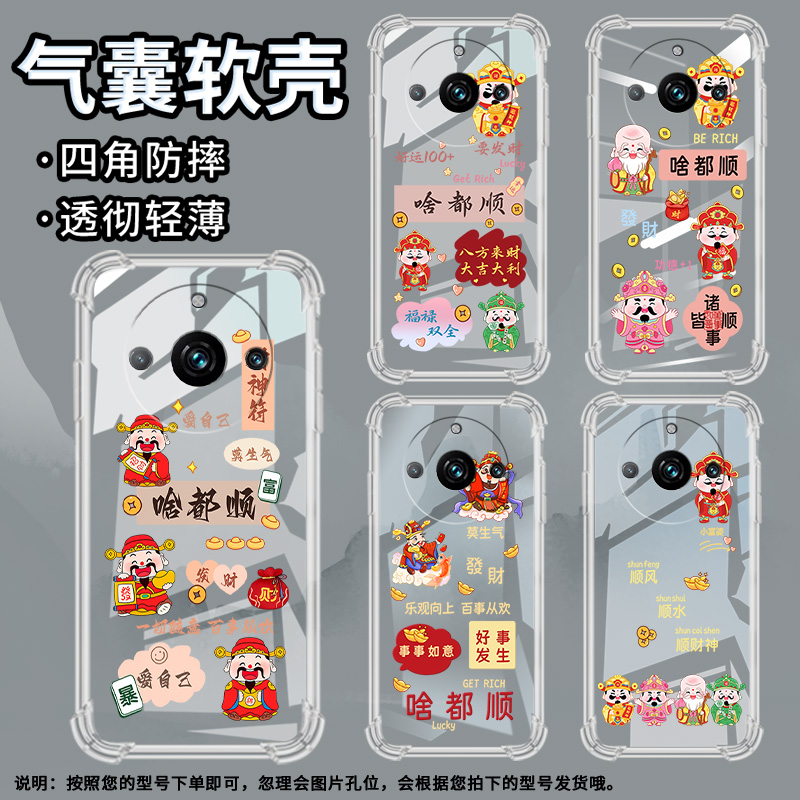适用RealmeNarzo60Pro气囊壳5G印度版手机壳真我保护壳啥都顺发财百事从欢商务元宝乐观向上卡通云端上的财神