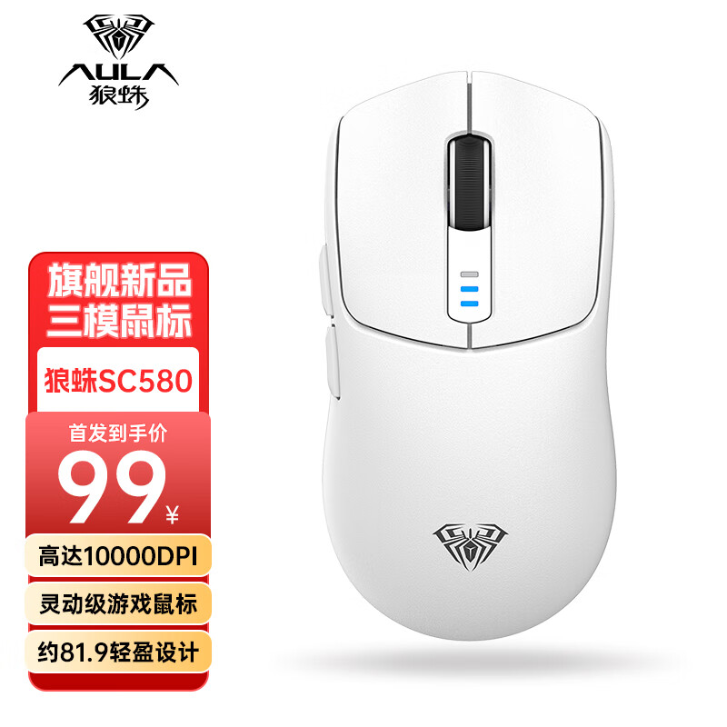 狼蛛SC580无线蓝牙三模鼠标轻量化鼠标 附防滑贴 type-C 办公游戏