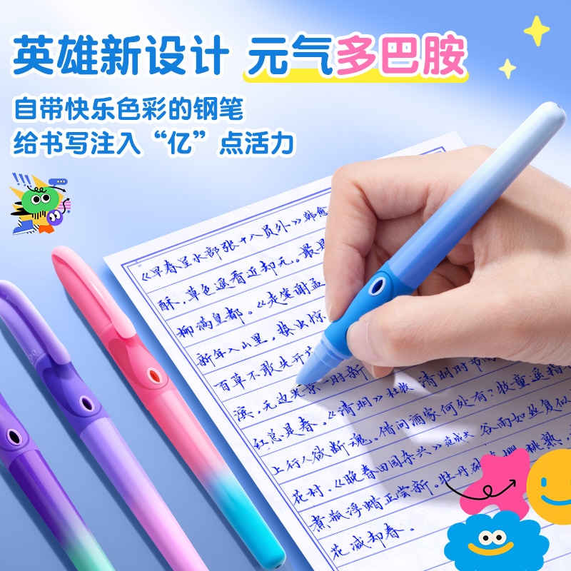 英雄热敏可擦钢笔可爱渐变色小学生专用三年级卡通正姿墨囊练字笔