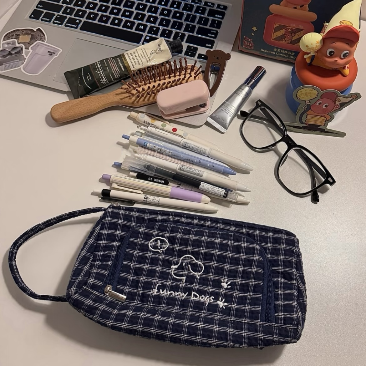 可爱小狗刺绣笔袋大容量高颜值小初高中学生文具收纳袋手提铅笔盒
