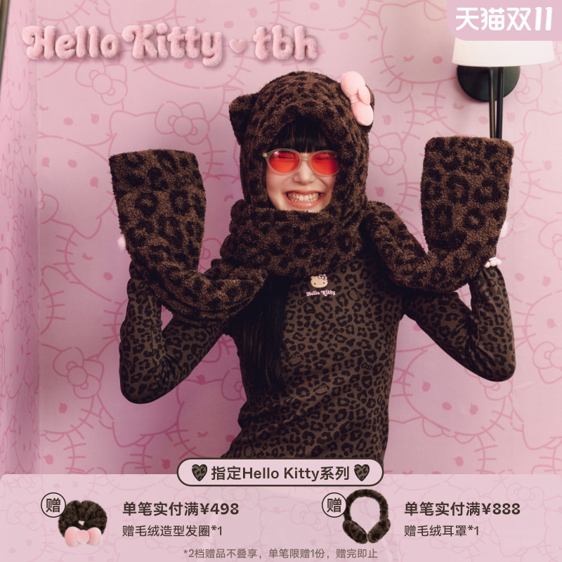 tbh野兽派家居三丽鸥Hello Kitty毛绒围巾帽冬季保暖帽子围脖礼物