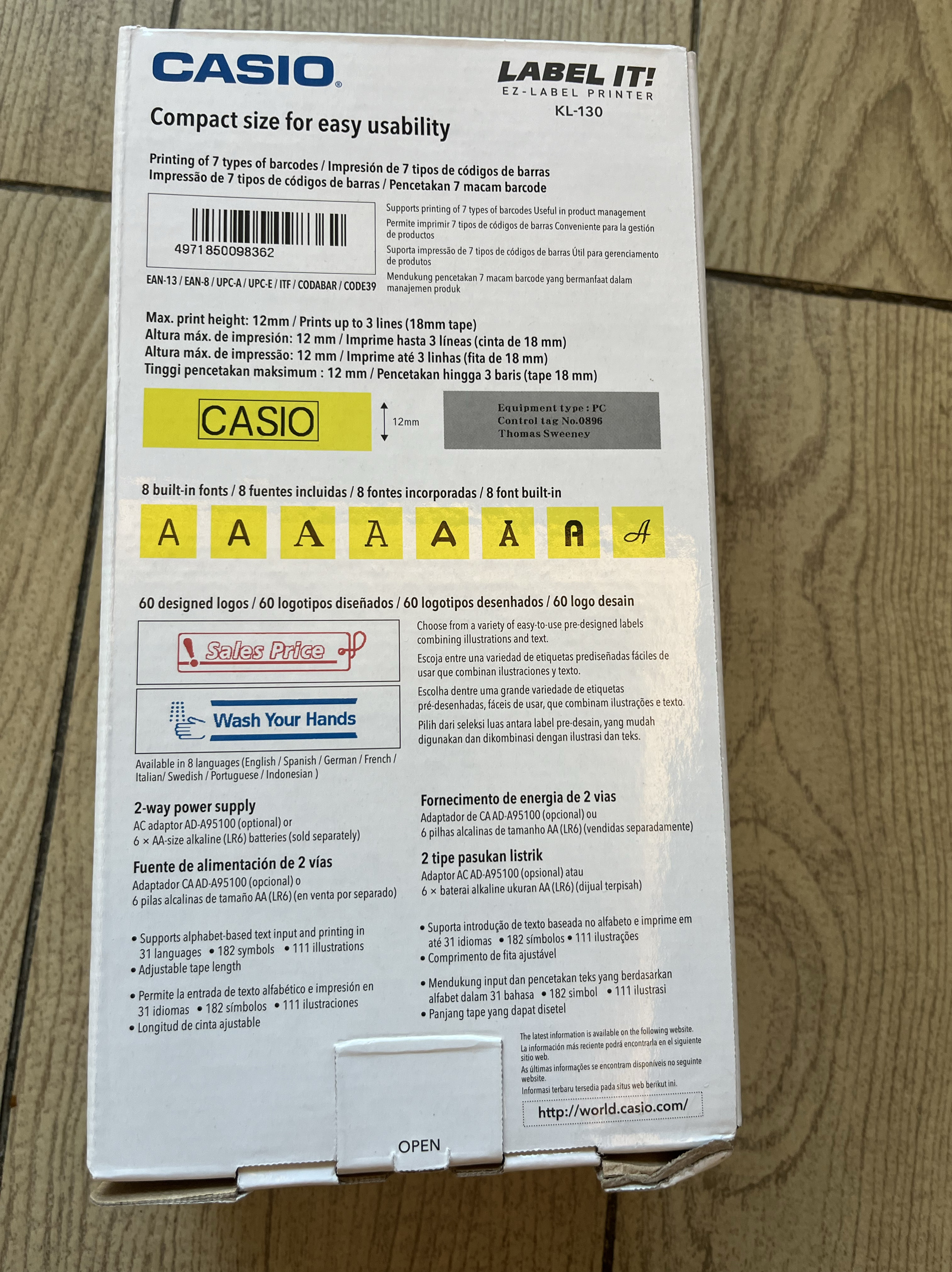全新正品CASIO卡西欧英文标签机可打印最大18mm手持便携式打印