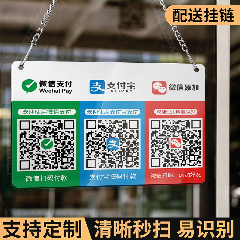 现货速发二维码收付款展示牌收款码挂牌支付宝店铺收银台收钱码扫