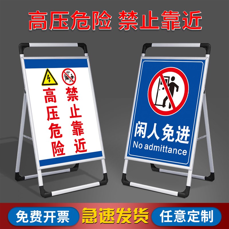 高压危险禁c止靠近闲人免进提示牌工地施工架子立式禁止入内标志