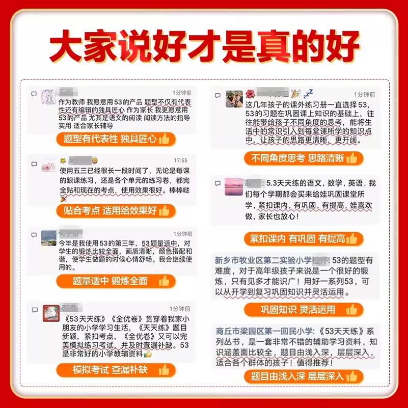 2025秋新53天天练一年级二年级三四五六年级上册语文数学英语全套人教版苏教版北师同步训练小学五三5.3练习册5+3测试卷下册小儿郎