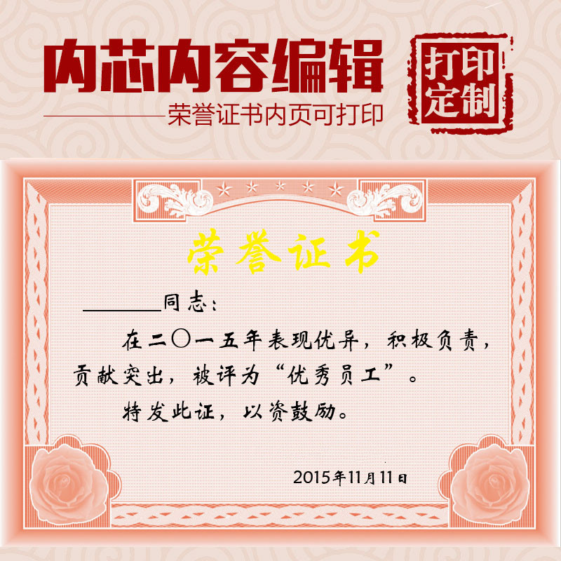威禹证书内心内芯加厚内页卡纸荣誉证书内芯连体打印定制A4B5铜版纸12K16K双面荣誉证书可设计排版打印包邮