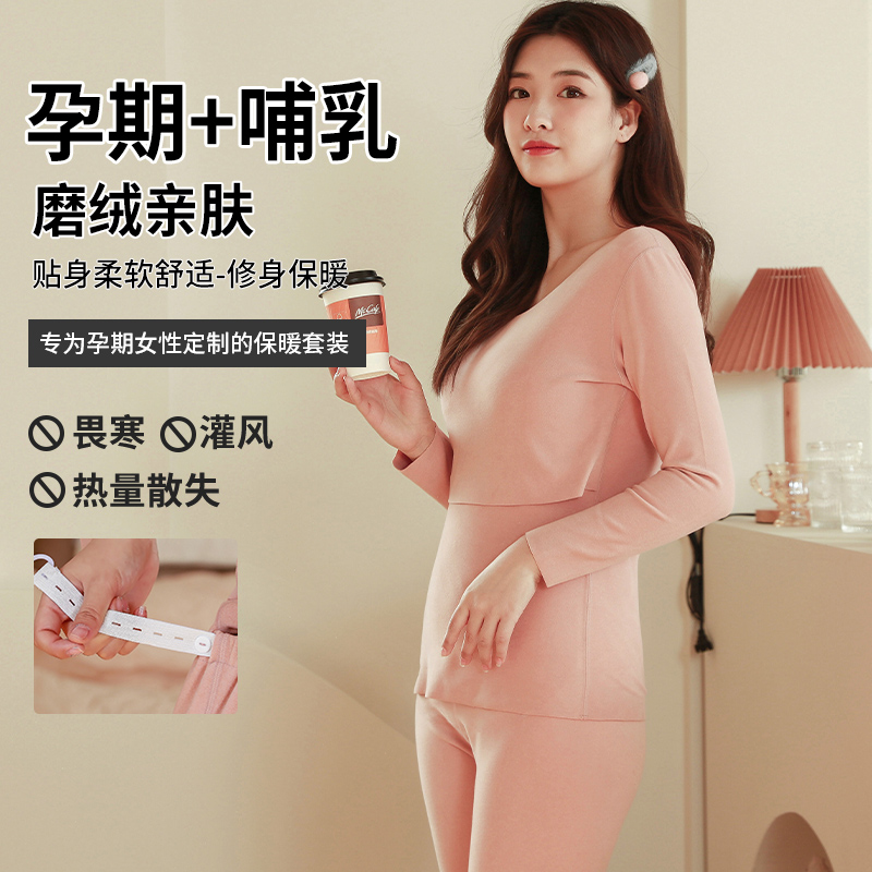 婧麒孕妇秋衣秋裤套装保暖内衣孕期打底产后哺乳喂奶大码月子服冬