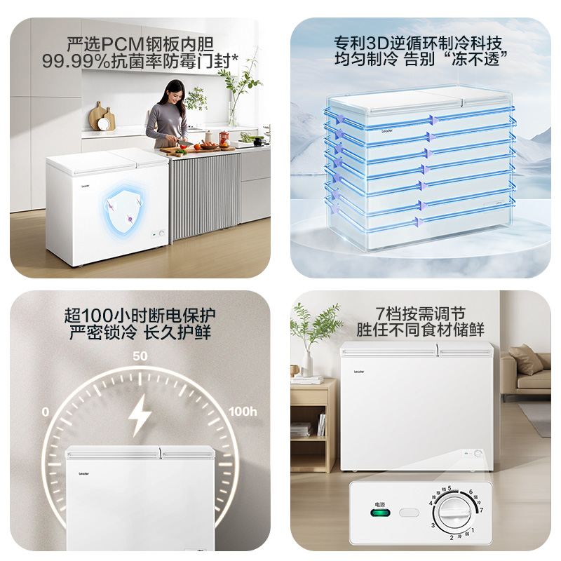 Leader海尔出品211升冰柜双温大容量保鲜冷冻两用卧式冷柜冰箱