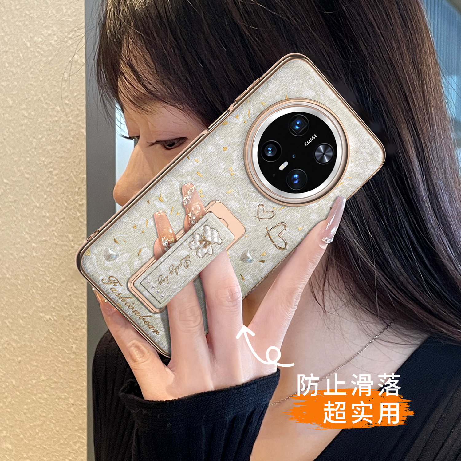 维泡奢华熊适用华为mate70pro手机壳新款旋转腕带支架华mata高档皮纹超薄por+全包防摔高级感MT女保护套素皮