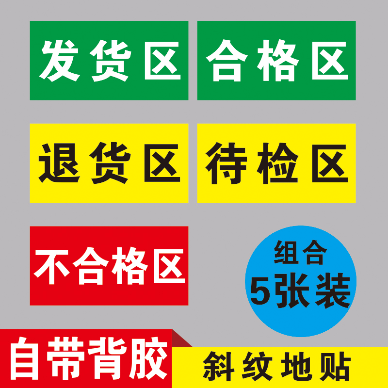 仓库区域划分斜纹标识地贴合格区发货区退货区不合格品区待检验区分隔地线耐磨带字药房药店超市分区标识胶带