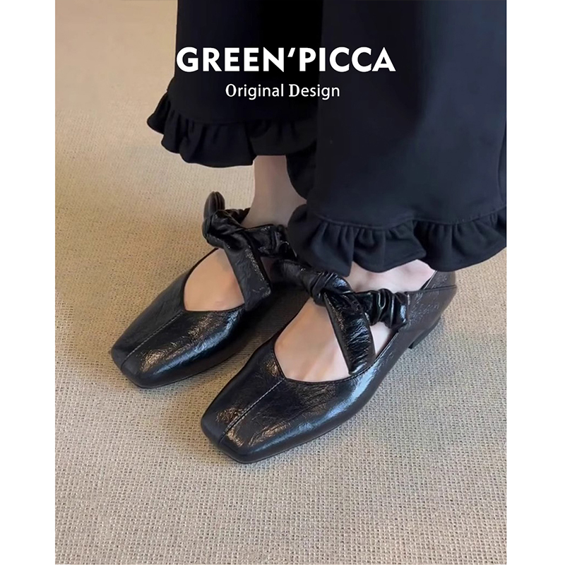 自留款~英伦风浅口平底单鞋女2025新款蝴蝶结一脚蹬方头玛丽珍鞋