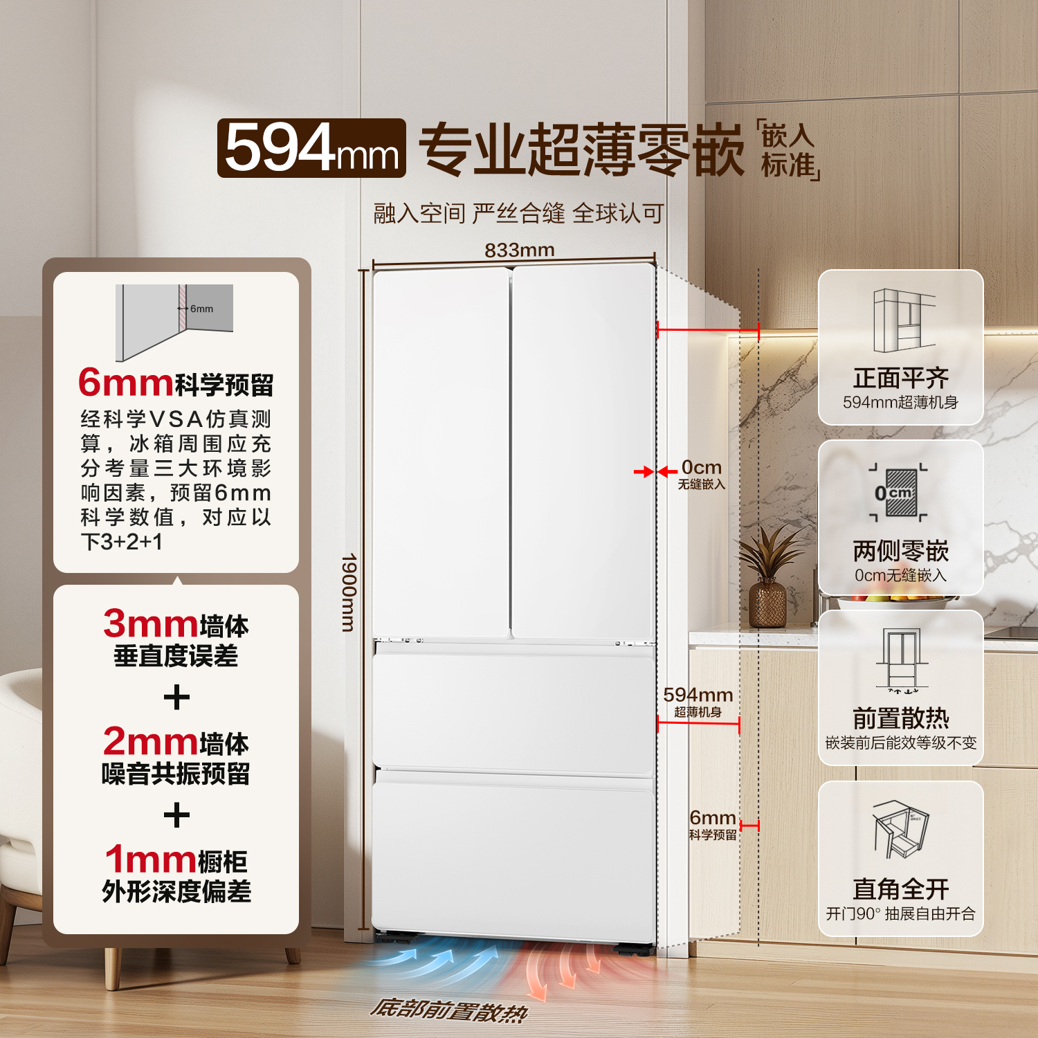 政府换新补贴海尔510L法式四门一级风冷超薄嵌入冰箱