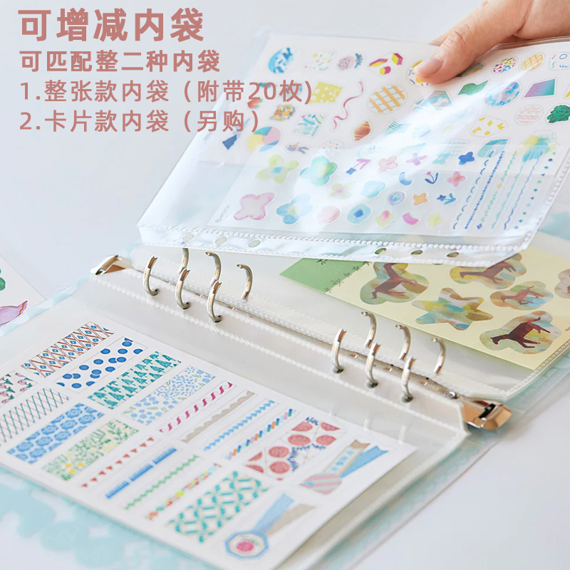 日本KingJim锦宫贴纸收纳册可增减活页内袋和纸胶带图鉴手帐贴纸收纳本A5手账贴纸素材2990日系ins收集册