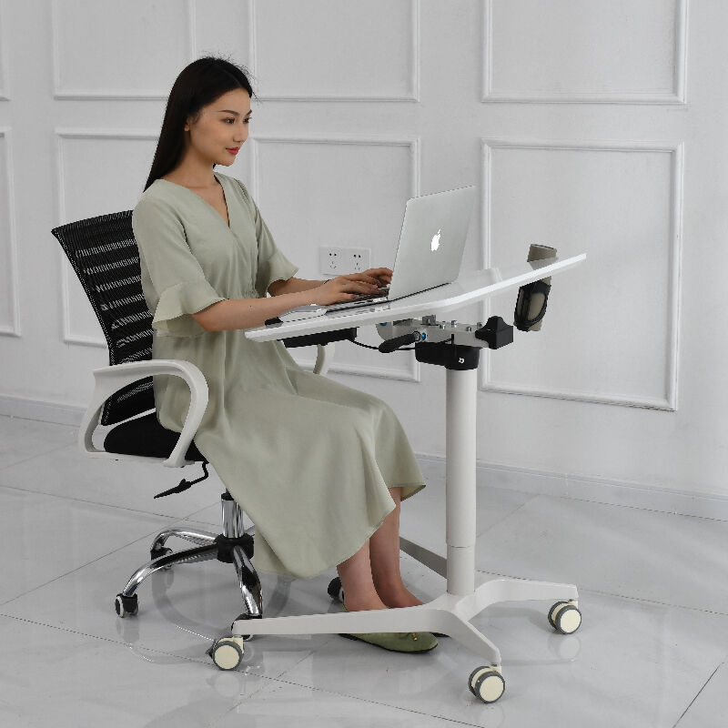 定制站立式工作台气动升s降电脑办公可移动床边小型书桌子白色+白